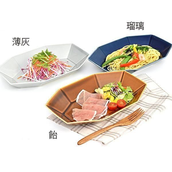 エッジの効いた形状ですが、光沢のある釉薬がかかっているため、つるつるとした手触りで、盛り付けや洗浄の際に、扱いやすい仕上がりになっています。