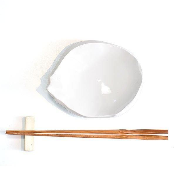 手でちぎって形作られたようなフォルムの、美しい乳白色の器です。