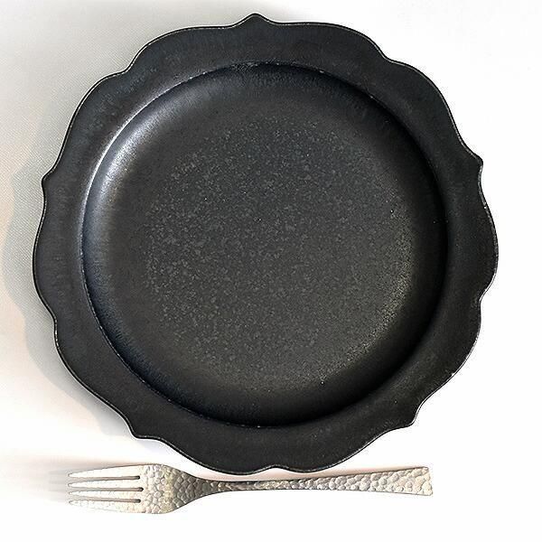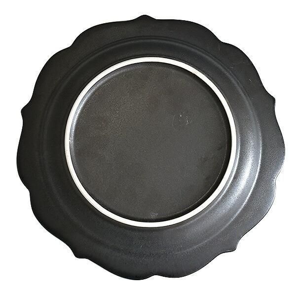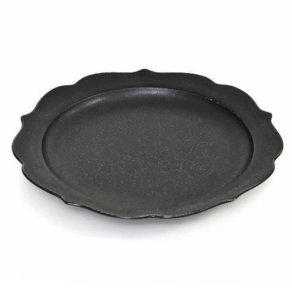 黒桔梗プレートL 約24.4cm 黒系 和食器 変形皿 日本製 美濃焼 業務用 g-2303-03